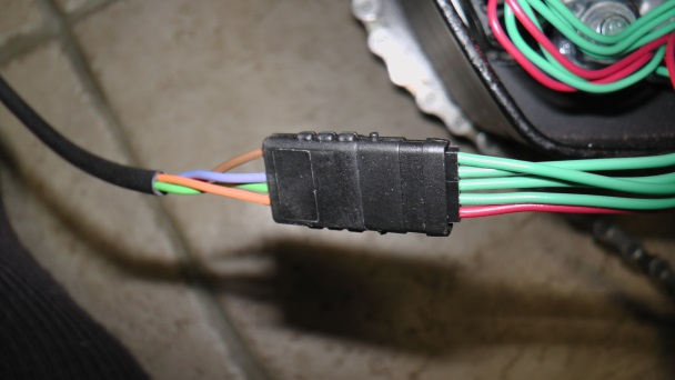 ④ Pro zachování vodotěsnosti je vhodné použít na původní konektory zapojené do protipólů v MSO teplem smrštitelnou bužírku s lepidlem. Případně je vhodné použít tavné lepidlo pro zabezpečení konektorů proti vypadnutí z těla motoru. Umístit MSO do vhodné polohy a případně použít na kabeláž elektrikářské stahovací pásky. Namontovat kryt i rameno zpět a kolo je připraveno k testovací jízdě.
